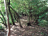 こんなにも人里離れた寂しい道を、義経は駆け抜けたのだろうか。華々しい戦さ場の名声から一転、ささいな行き違いにより追われる身となった義経主従。黒崎海岸近くに残る旧北陸道・浜通り道(旧木曽街道)に立つと、義経の無念が胸に迫ってくるようです。義経一行が辿った道には諸説ありますが、当時この地の代表的な道といえば、まず官道の北陸道をあげることができます。中世の北陸道には海岸沿いの[浜通り道]と内陸の[中通り道]がありましたが、海風が吹きつけ、崖や砂浜が迫る険しい[浜通り道]はやがて官道の役目を終えていきます。しかし、その[浜通り道]の一部が加賀市黒崎町北の黒松林の中に今も残っているのです。史実を大切にしながら、そこから物語をふくらませて、歴史の舞台や歴史の道を探し出し、訪ね歩くことに私は楽しさを感じます。義経の逃避行を、木曽義仲が都をめざして攻め上った野望を、南加賀で追体験してみませんか。わずかに残る中世の道を足がかりとして、源平の旅を始めましょう。