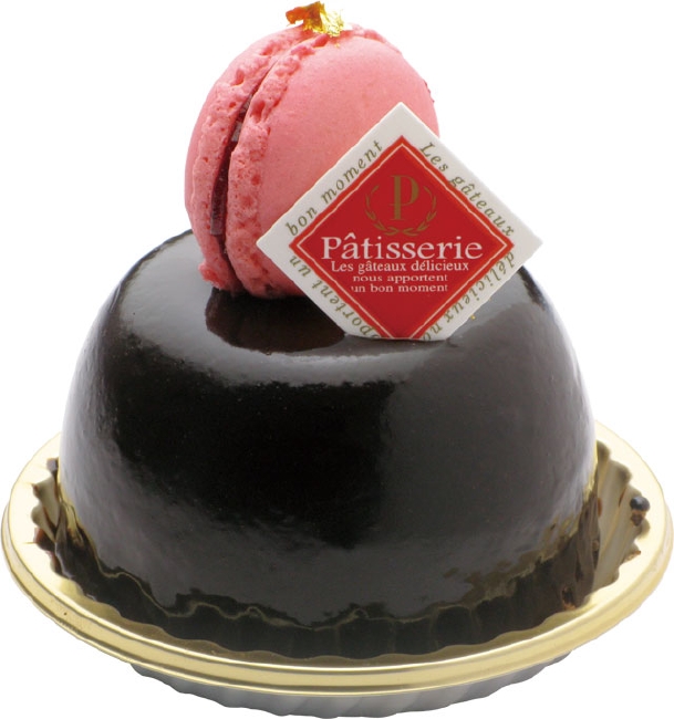 [ GÂTEAU ROUGE ] 酸味のあるラズベリーと甘いチョコレートの2種類のやわらかいムースを、さらにチョコレートでコーティングしてあります。 上にはサクサクとしたラズベリーのマカロンが添えられており、異なる食感と味わいを堪能できます。